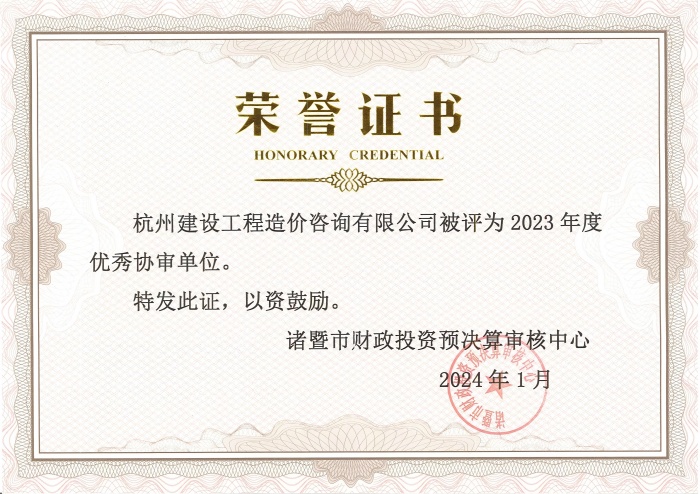 浙江省工程造价咨询企业动态信用能力AAAAA